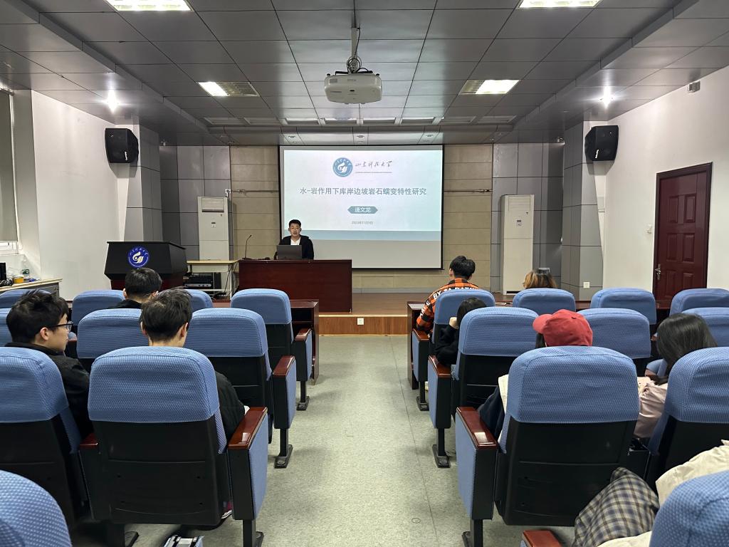 通过这次讲座,给同学们指明了水-岩作用下库岸边坡岩石蠕变特性的研究现状及未来方向,对提升同学们的学术水平,拓展研究视野具有积极意义。