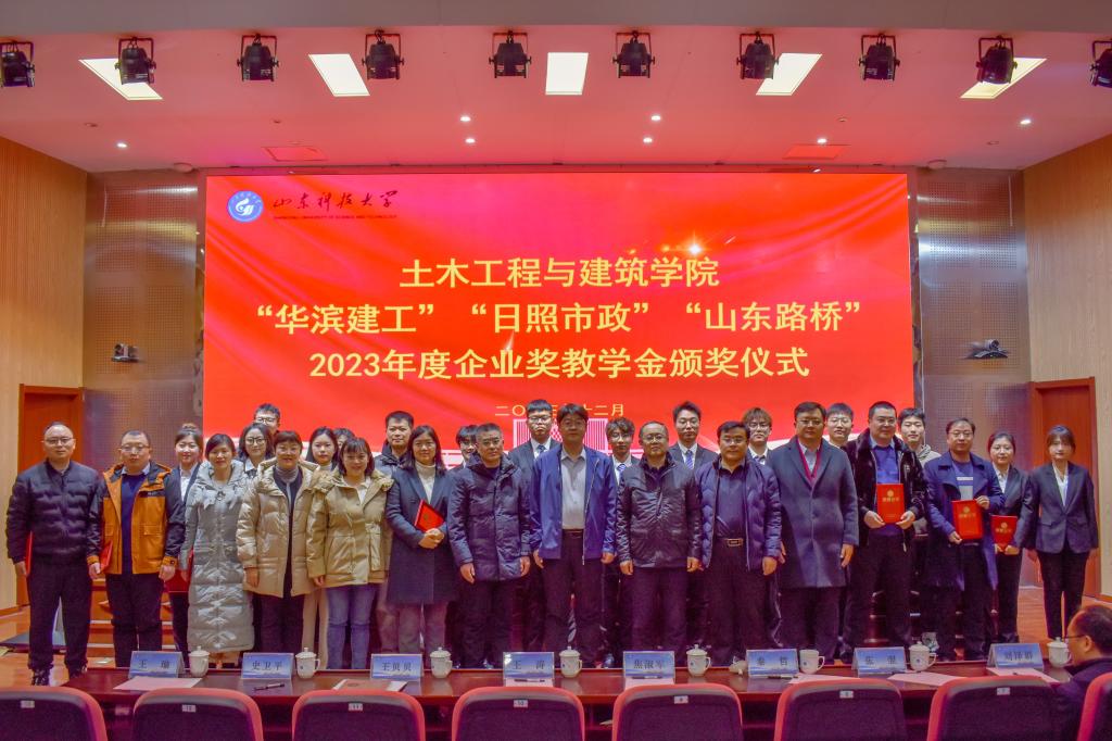 12月22日,beat365官网在J9-144报告厅举行2023年度“华滨建工”“日照市政”“山东路桥”企业奖教学金颁奖仪式。学校学生工作部(处)部(处)长、校团委书记尹立明,日照市政工程集团副总经理袁正君、爆破公司经理焦淑军,山东省路桥集团青岛分公司党总支书记、副总经理曹建军,安全总监王涛,合作发展处副处长王荣超,beat365官网党委书记宋西路、院长王崇革、党委副书记高静、副院长李朋、院长助理秦哲及师生代表参加了颁奖仪式。仪式由高静主持。