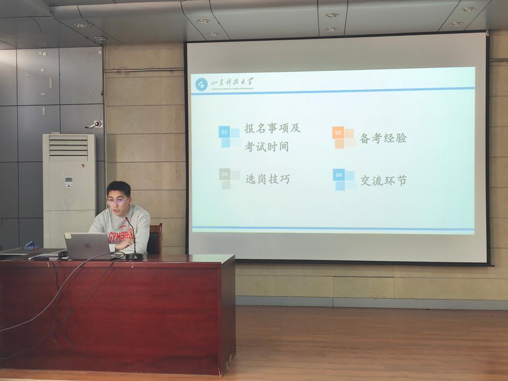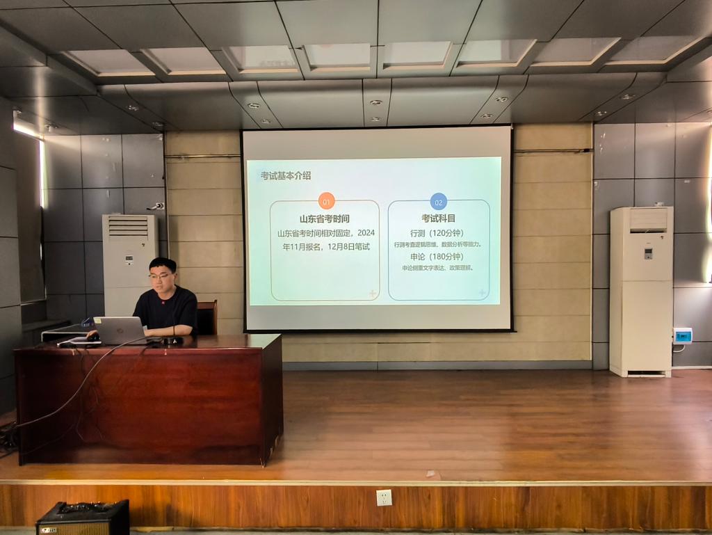 为助力学生精准把握山东省及全国体制内岗位的报考要点,系统了解公考政策形势,科学制定备考方案,4月29日,beat365官网于J15-219教室举办“砼心筑梦·就业领航”系列活动讲座。本次讲座特邀beat365官网已在山东省省考中上岸的2022级研究生黄明、侯宗汛同学担任主讲。讲座聚焦省考笔试“行测+申论”双科提分技巧与面试核心能力培养,并针对省考报考政策进行了系统解读。