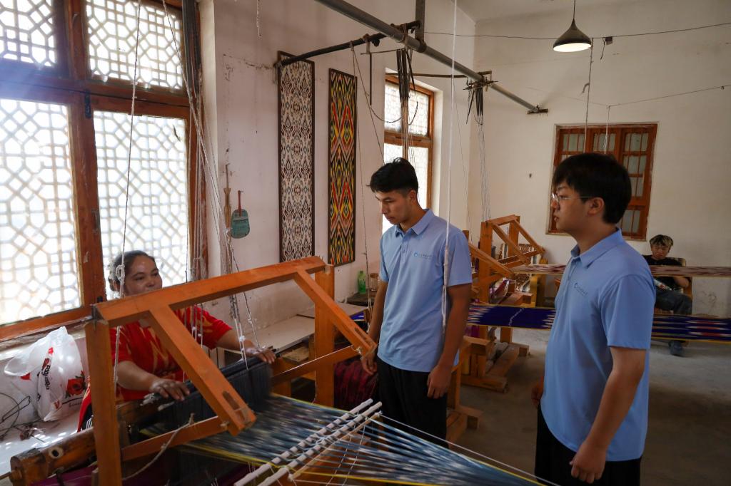 走入艾德莱斯绸手工坊和和田玉都城,实践队成员们与非遗传承人深入交流,队员们深切体会国家级非物质文化遗产的独特魅力与贯穿古今的“玉石之路”所承载的经济文化纽带作用,深刻认识中华文化兼收并蓄的磅礴生命力及其在促进民族交往交流交融中的重要作用。