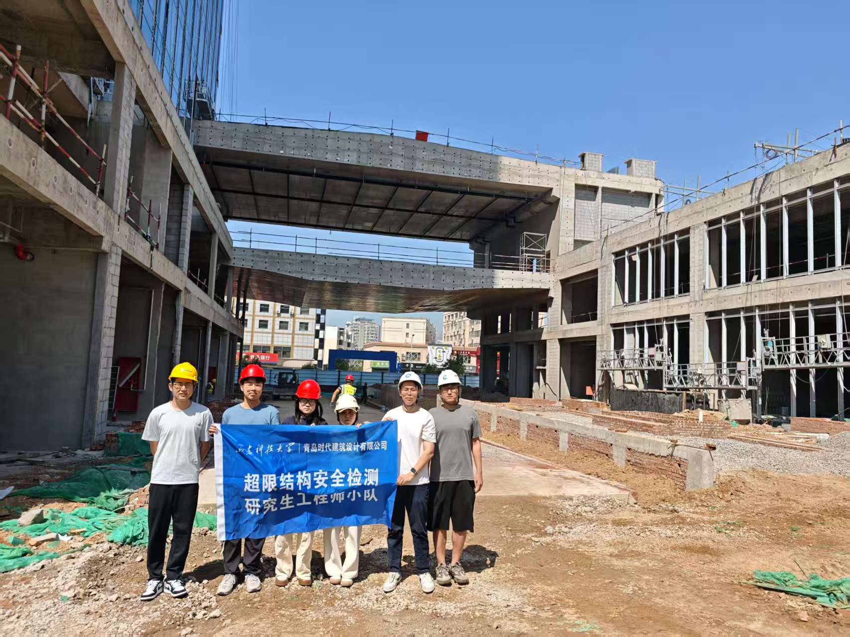 “超限结构安全检测”工程师小队于8月16日赴青岛时代建筑设计有限公司承建的长江会议中心项目工地现场,实地考察项目的主体结构、关键节点及施工工艺,考察结束后,小队成员与青岛时代建筑设计有限公司技术总监王亚磊在项目部会议室举行技术交流会,王亚磊介绍了长江会议中心在施工中的创新技术,并重点分享了公司在超限建筑安全监测领域的实践经验,小队成员则汇报了团队在该项目在仿真模拟等方面的研究成果,并就实际工程中的问题提出建议,现场互动热烈,学术氛围浓厚。