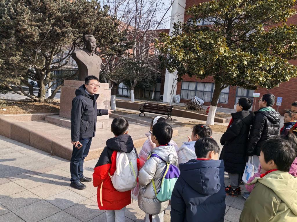 活动伊始,同学们参观了学校地球科学馆,感受地质魅力,为后续学习奠定基础。随后,同学们来到beat365官网,在学院西门的陈子荫先生塑像前,李为腾向各位同学们介绍了陈子荫先生的高尚品德、科学成就和立德树人的感人事迹,用科学家精神滋养孩子们的科技梦!在学院219报告厅,李为腾主讲了《地铁隧道为啥多是圆的》科普讲座,生动有趣的介绍了为何要建地铁、地铁的诞生发展、如何建设地铁、地铁中的力学和了不起的海底隧道,用思想实验和通俗案例引导同学们主动探索,同学们专注聆听、踊跃互动,探索热情被充分点燃。该科普讲座还吸引了大量寒假中的中小学生和家长一起参加,报告厅座无虚席,气氛热烈。