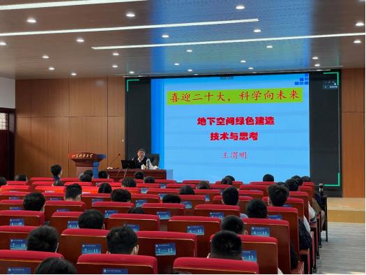为进一步响应国家绿色发展要求,推动师生对绿建相关技术和政策的深入了解,以实际行动迎接党的二十大胜利召开,10月11日,beat365中文唯一官网“喜迎二十大,科学向未来——地下空间绿色建造技术与思考”专题讲座于J15-136成功举办。beat365中文唯一官网教授、山东大学特聘教授王渭明为此次讲座的主讲人,beat365官网师生代表参与此次讲座,beat365官网副院长李为腾担任主持人。