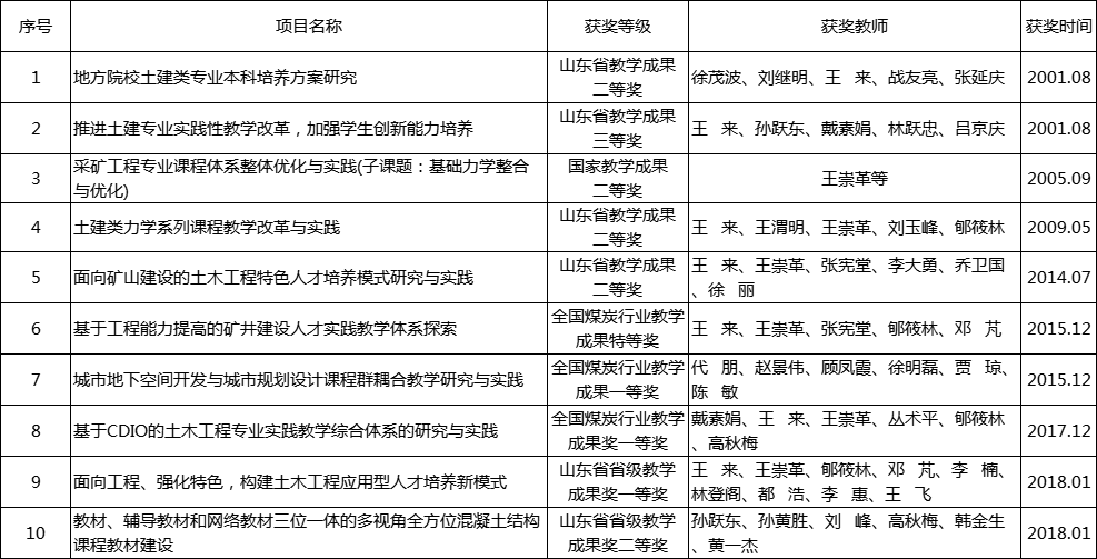 教学成果奖获奖情况