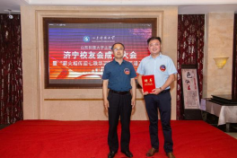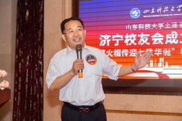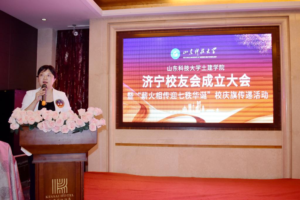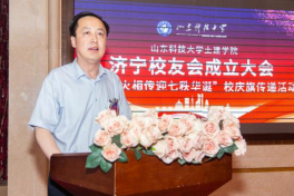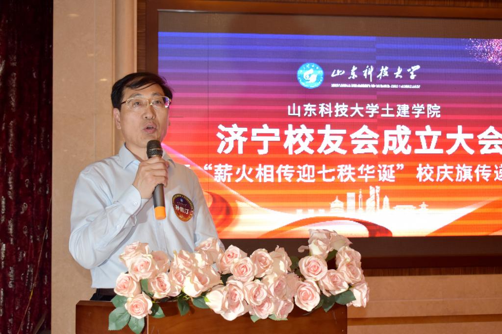 孙鹤汀代表学校对beat365官网济宁校友会的成立表示热烈祝贺,他回顾了学校与校友工作的发展历史,与校友们分享了学校近年来取得的成绩和“一家人一家亲,守望相助,共荣共进”的校友工作理念,他强调,校友会是联系学校和校友的情感纽带和交流平台,希望校友会建成加强联系,促进交流,增进友情,共享互助,促进校友事业发展,襄助母校事业发展的平台。他强调,母校70华诞是37万海内外校友共同的节日,校庆旗传递是校庆系列活动之一,校庆旗在山东省内各校友会及全球范围内各校友会进行接力传递。希望广大校友积极参与校庆活动,更好传承学校文化,凝聚校友力量,扩大社会影响,并诚邀广大校友回母校同襄盛会,畅叙友情。