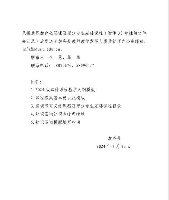 关于做好2024版本科专业人才培养方案课程教学大纲与教案编制工作的通知
